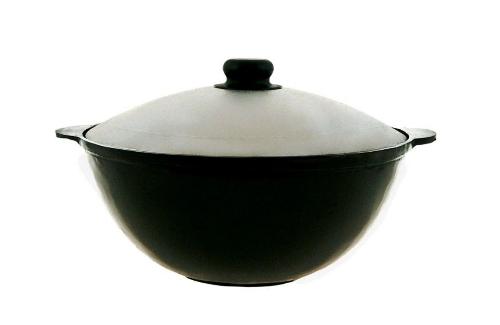 Универсальный чугунный казан подходит для готовки как на природе в специализированной печи, так и дома в духовке или на плите. Благодаря чугунным стенкам казан равномерно нагревается и медленно остывает, при этом толстое дно казана предотвращает подгорание пищи. Для чугунного казана характерна особая надежность и износостойкость, он легко отчищается и не повреждается при использовании абразивных моющих средств. Пища, приготовленная в казане, отличается сочностью и сохраняет свою полезность.В комплект входит алюминиевая крышка.