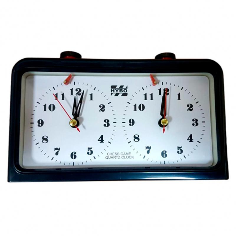 Часы шахматные кварцевые НВ9004.Шахматные часы используются для контроля времени во время игры. Часы включают в себя – два циферблата, две пластиковые кнопки для переключения часов, два пластиковых листа, предотвращающих случайное нажатие и включение часов . На каждом циферблате имеется флажок для фиксации окончания времени. С оборотной стороны находятся два поворотных механизма перевода стрелок для регулировки часовой и минутной стрелки.